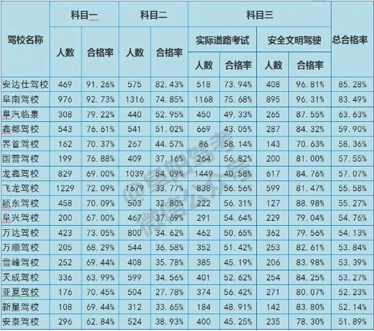 (东胜驾校已停止招生学员,不纳入排名。凯旋驾校、颍上春晖驾校暂停学员招生,不纳入本月排名。)