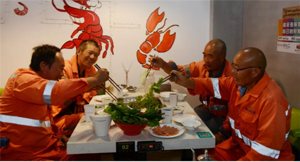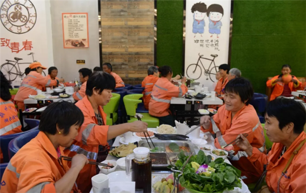 “是这里吗?”“是的,请进吧。”今天,阜城部分环卫工人结束劳动后,来到位于万达金街的一家火锅店,服务员已在门前迎接他们。从中午到晚上,一拨又一拨的环卫工人来到这里,开心地吃起了免费火锅,总人数达360